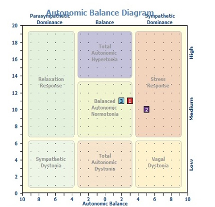 1→2→3と測定することによって自律神経の状態の変化を3段階で把握する事は可能です。
